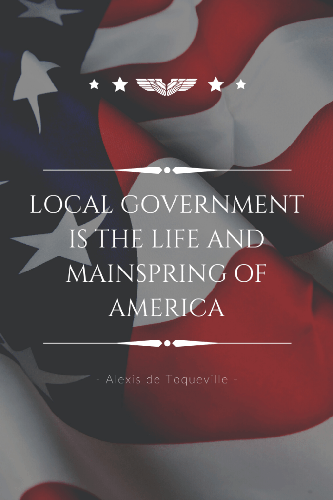 French politician Alexis de Toqueville said that local government is “the life and mainspring of America”. He understood that democracy in America was founded on the principle and supported by the backbone of local free elections.